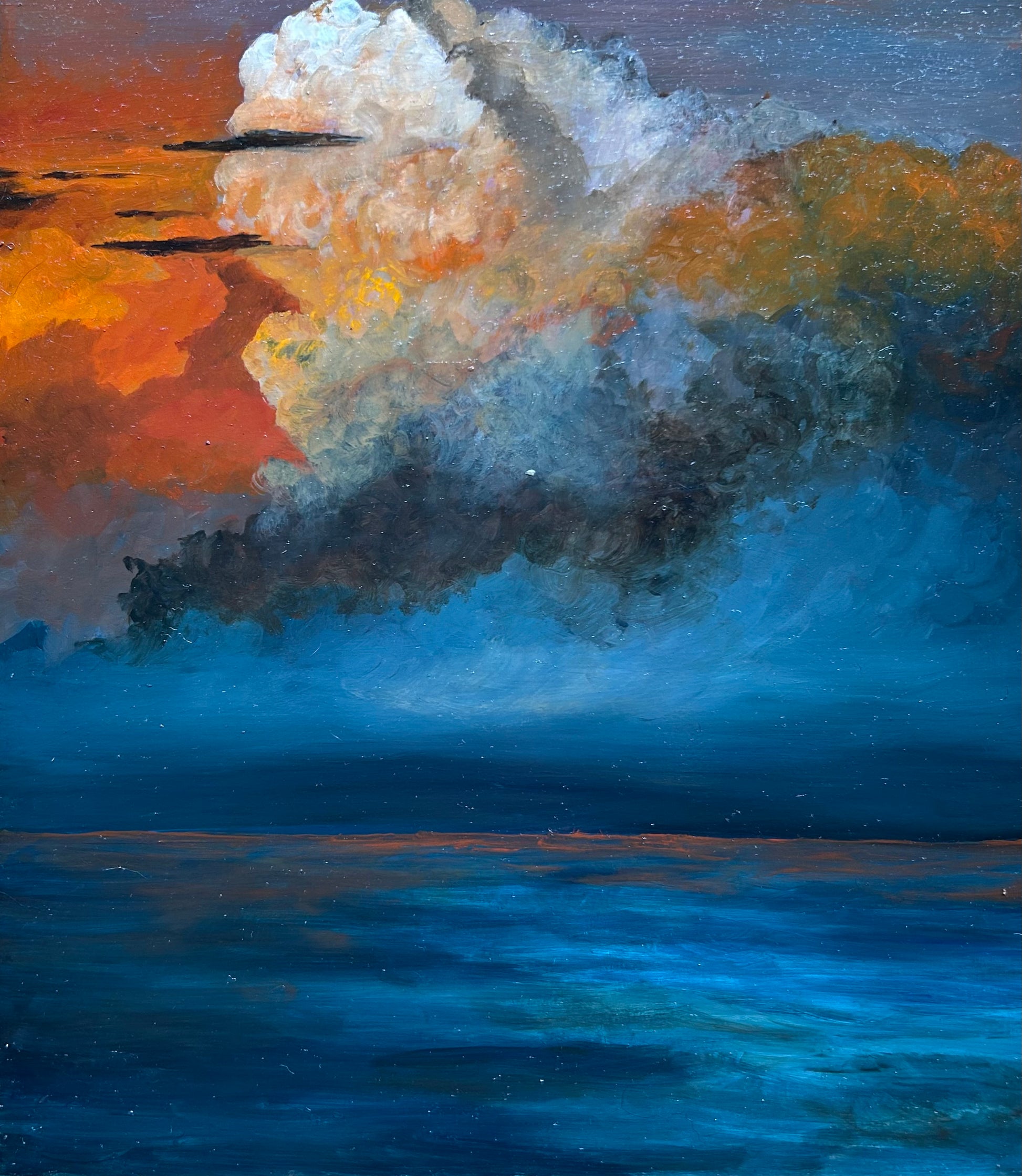 "Cloud Nine" – Vivid Red, Orange and Blue Clouds Over Deep Blue Water
