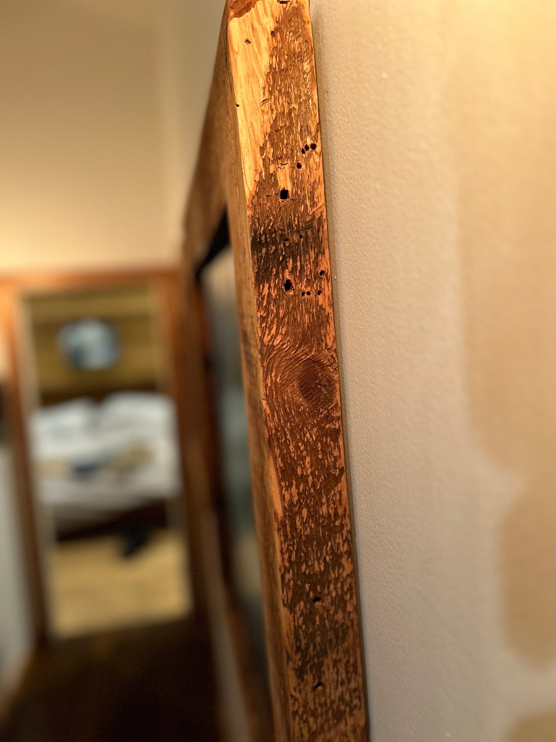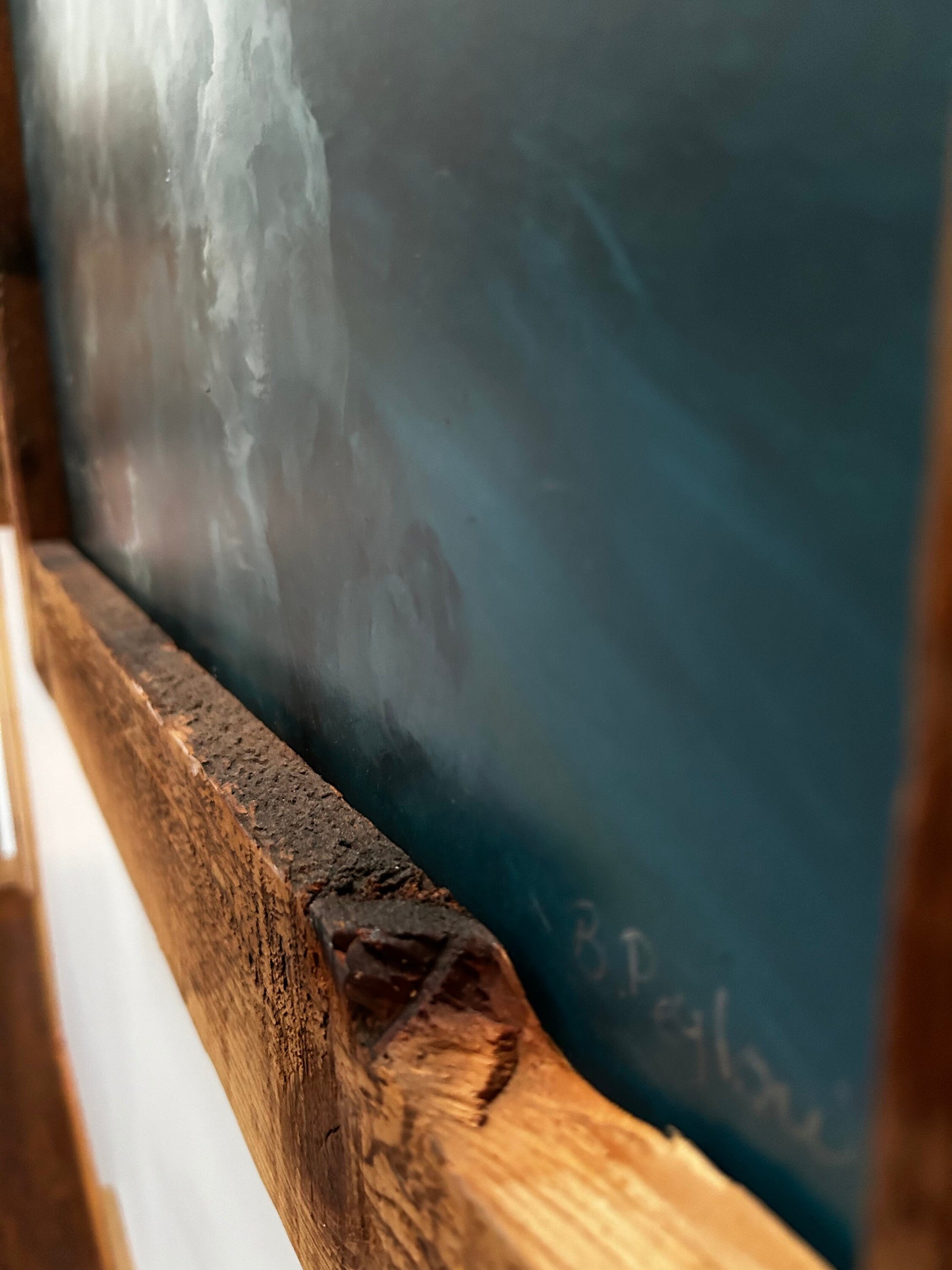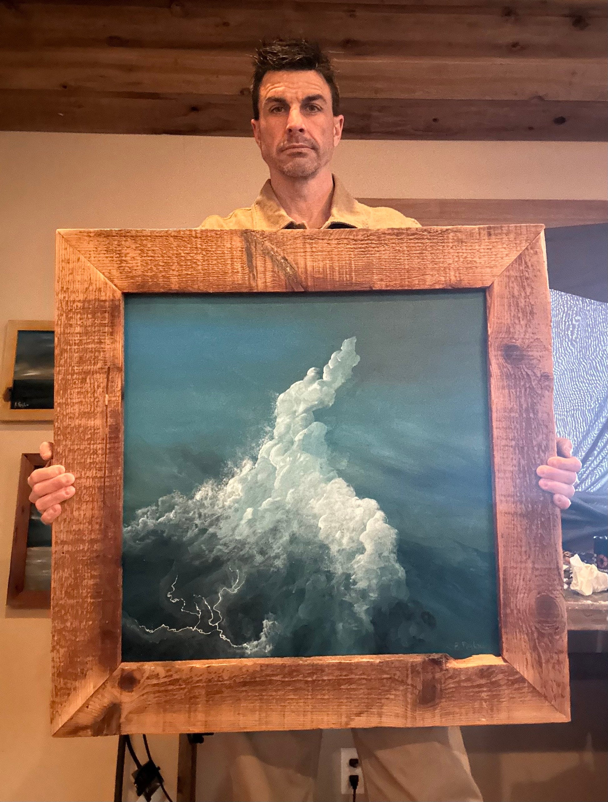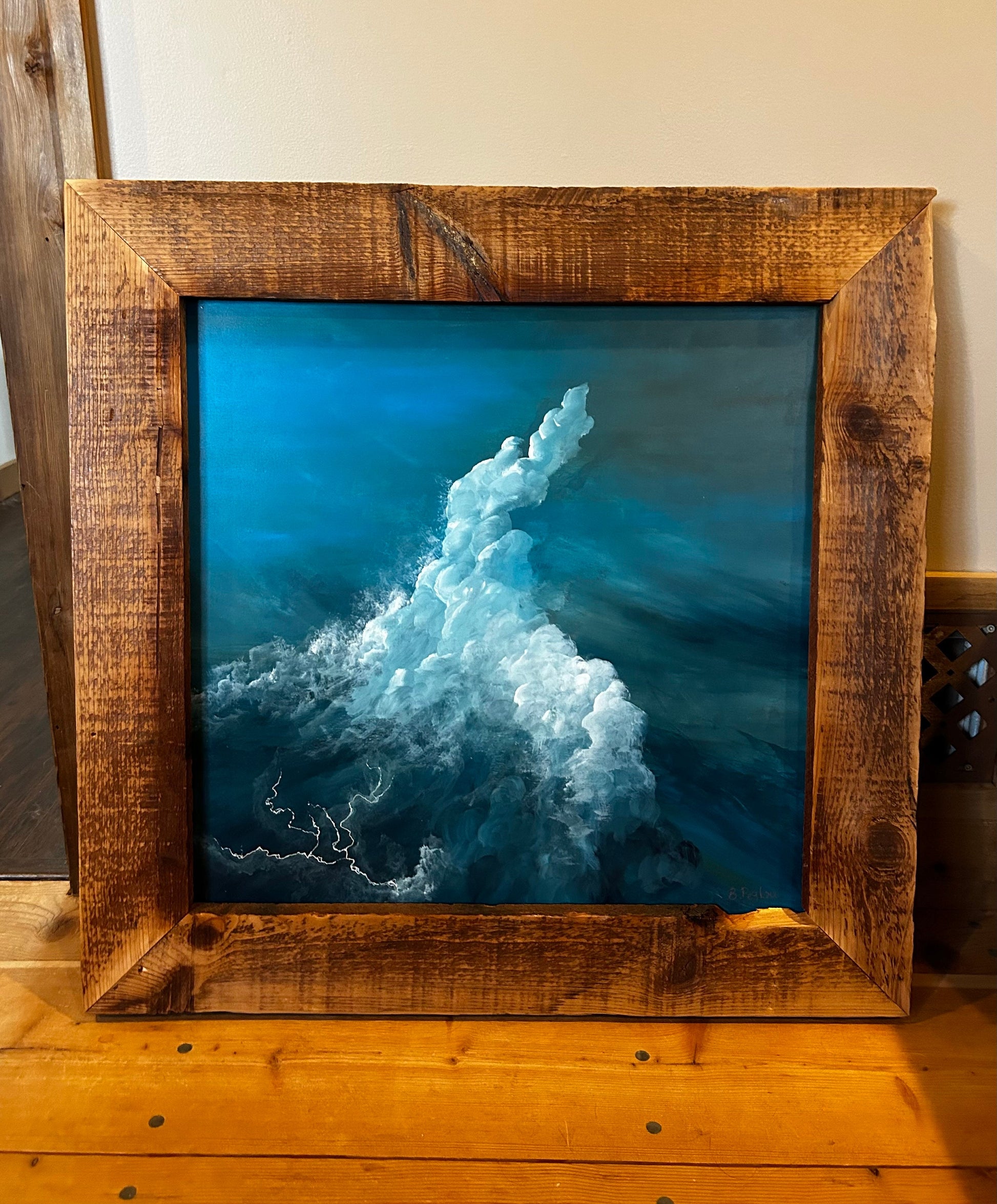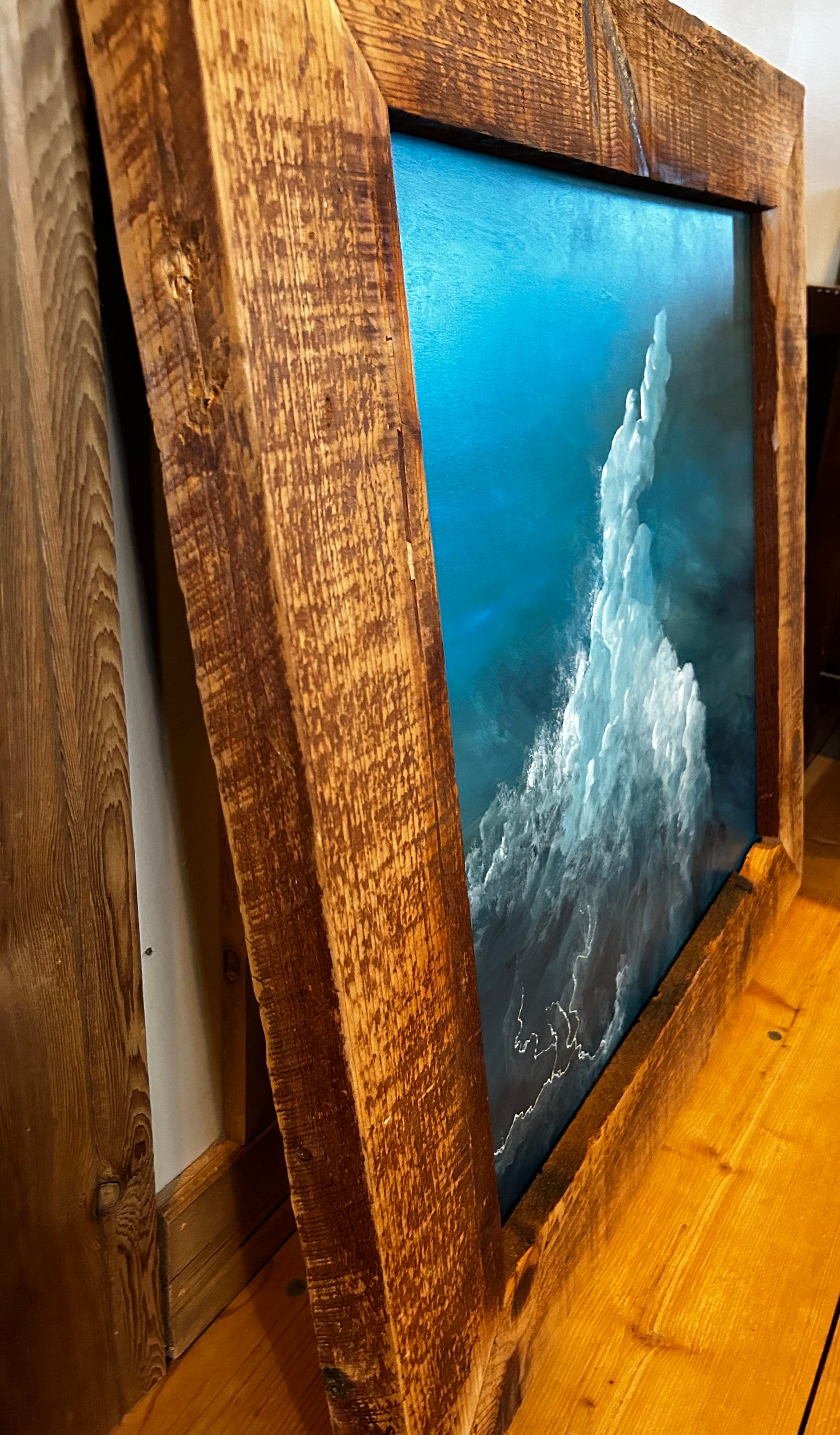Materials: Acrylic Paint and Hardboard. Frame is reclaimed Douglas Fir wood recovered from an old factory tear down in St. Paul Minnesota.