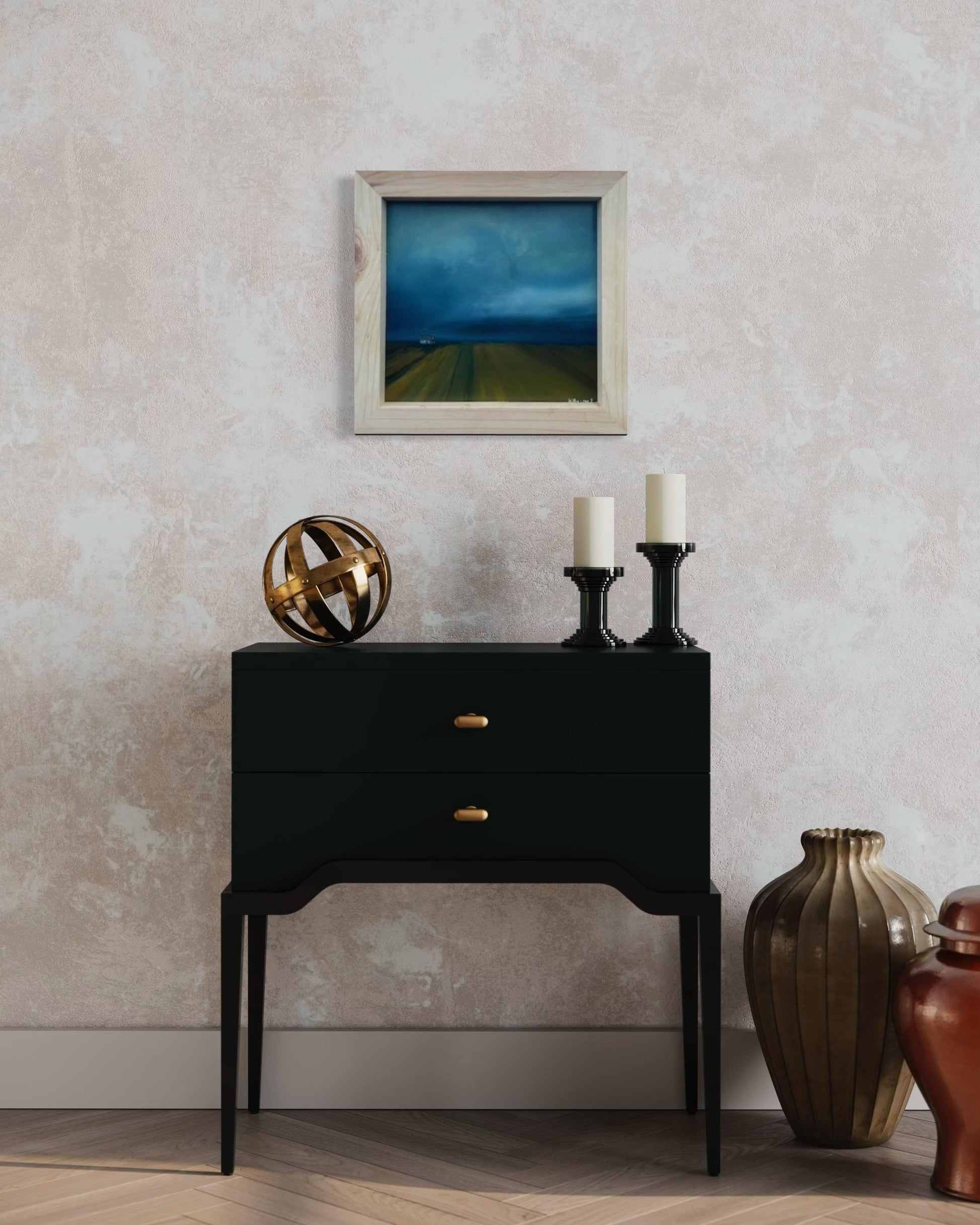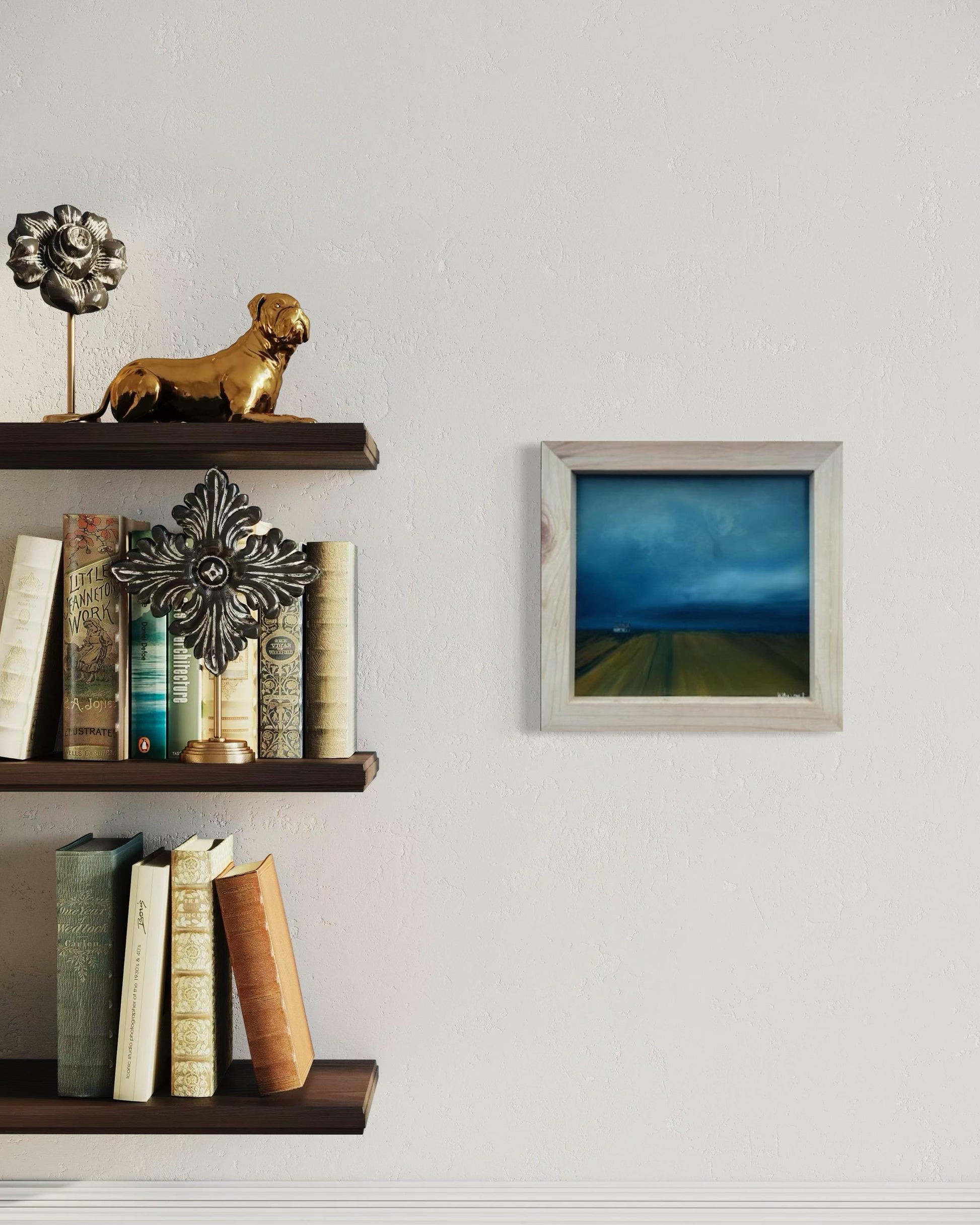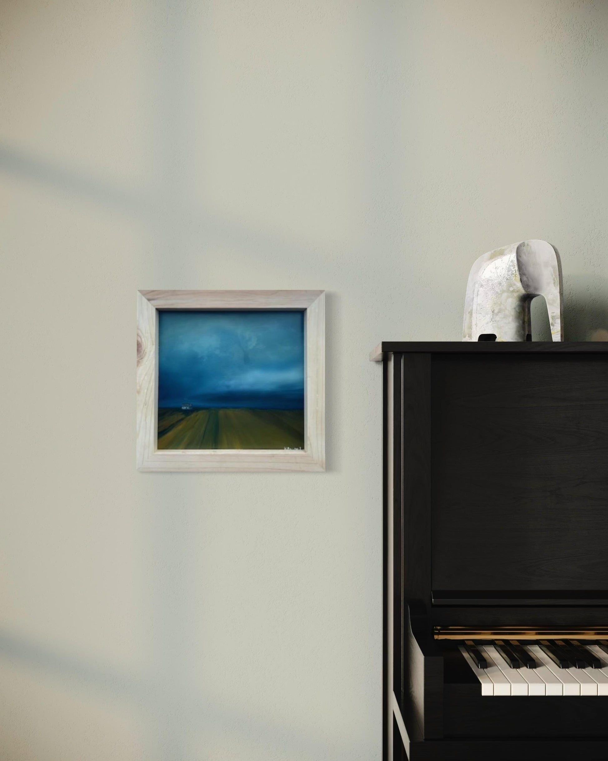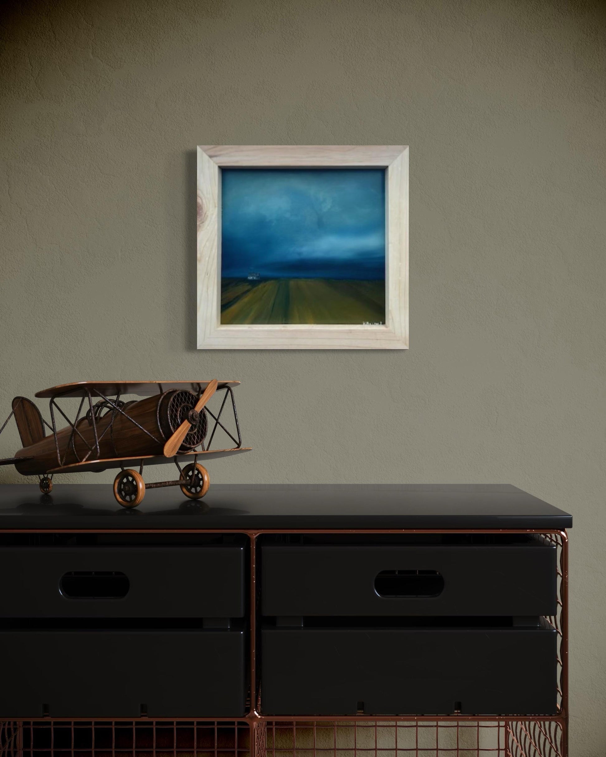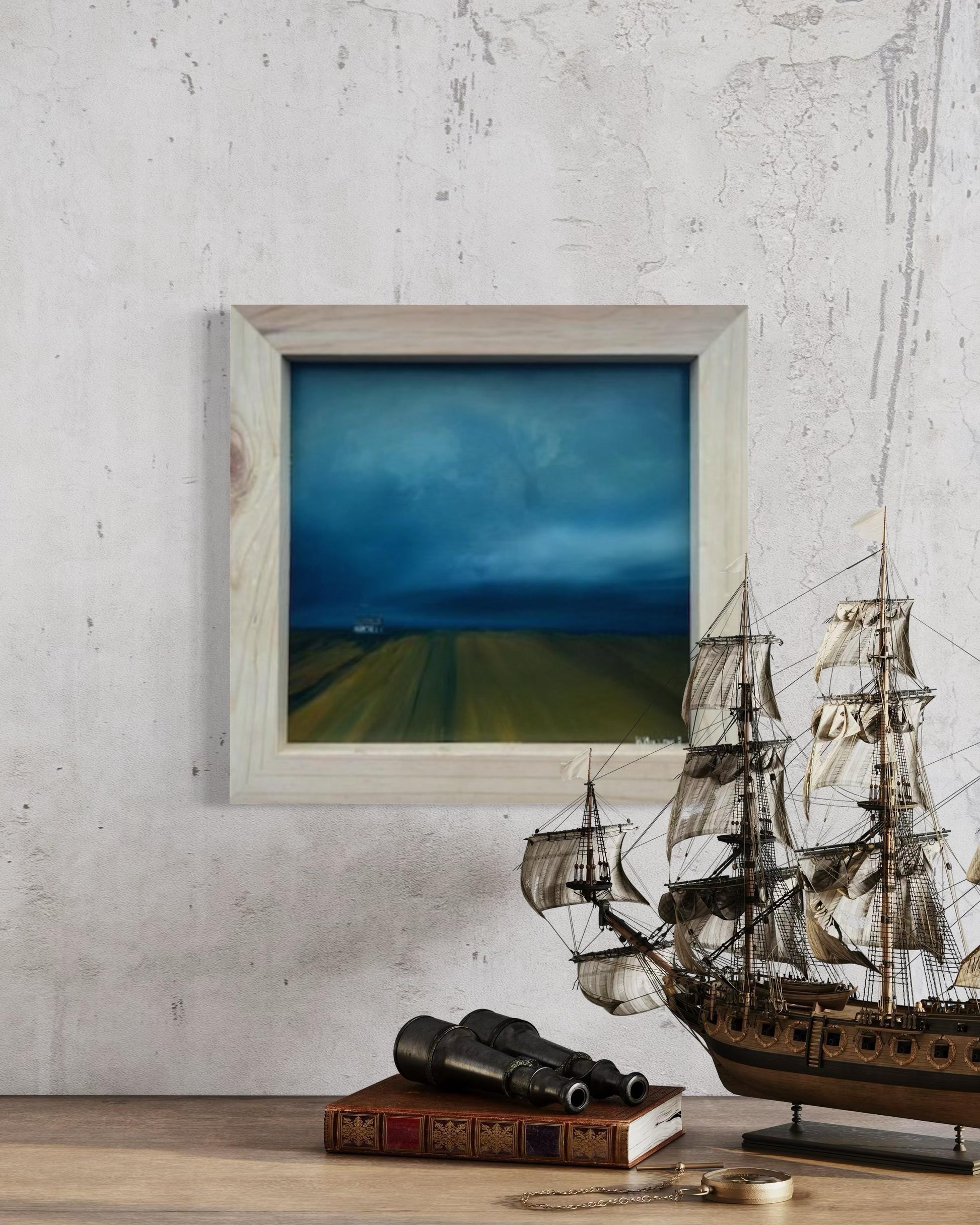 Discover a captivating oil painting of a dreary farm landscape, perfect for adding a touch of rustic charm to your home. This artwork features a dramatic scene with large storm clouds looming in the distance, casting a moody atmosphere over the serene countryside. Rows of meticulously tilled soil lead the eye towards a distant farmhouse, evoking a sense of solitude and timelessness. Ideal for lovers of rural art and those who appreciate the beauty of stormy skies and agricultural vistas. Enhance your space with this evocative, hand-painted piece that captures the essence of a tranquil yet intense farm setting.Rural, Moody, Rustic Perfect For: Farmhouse decor and Country-themed rooms. Art collectors Bring home this unique, stormy farm landscape painting and infuse your decor with its dramatic beauty and atmospheric depth