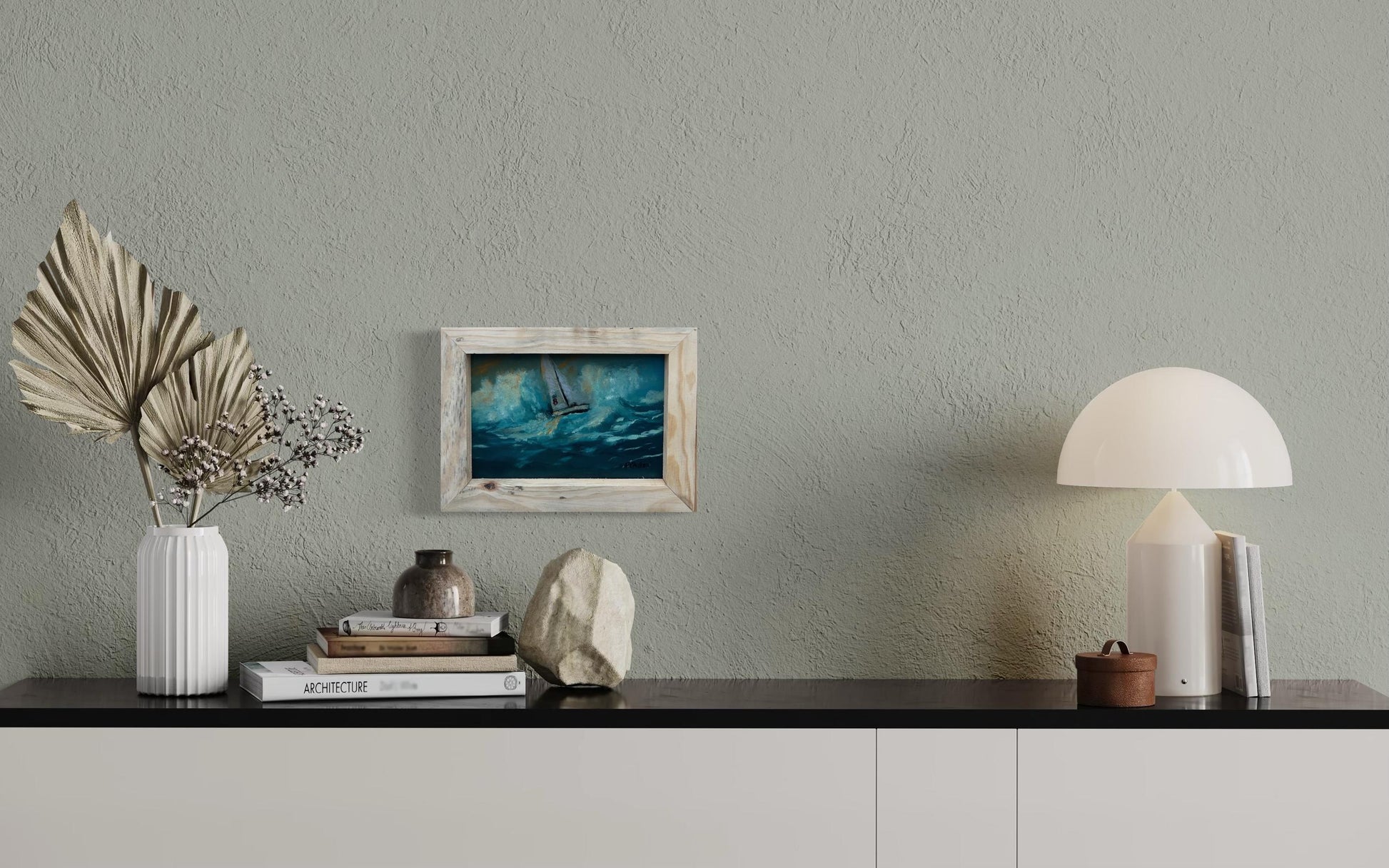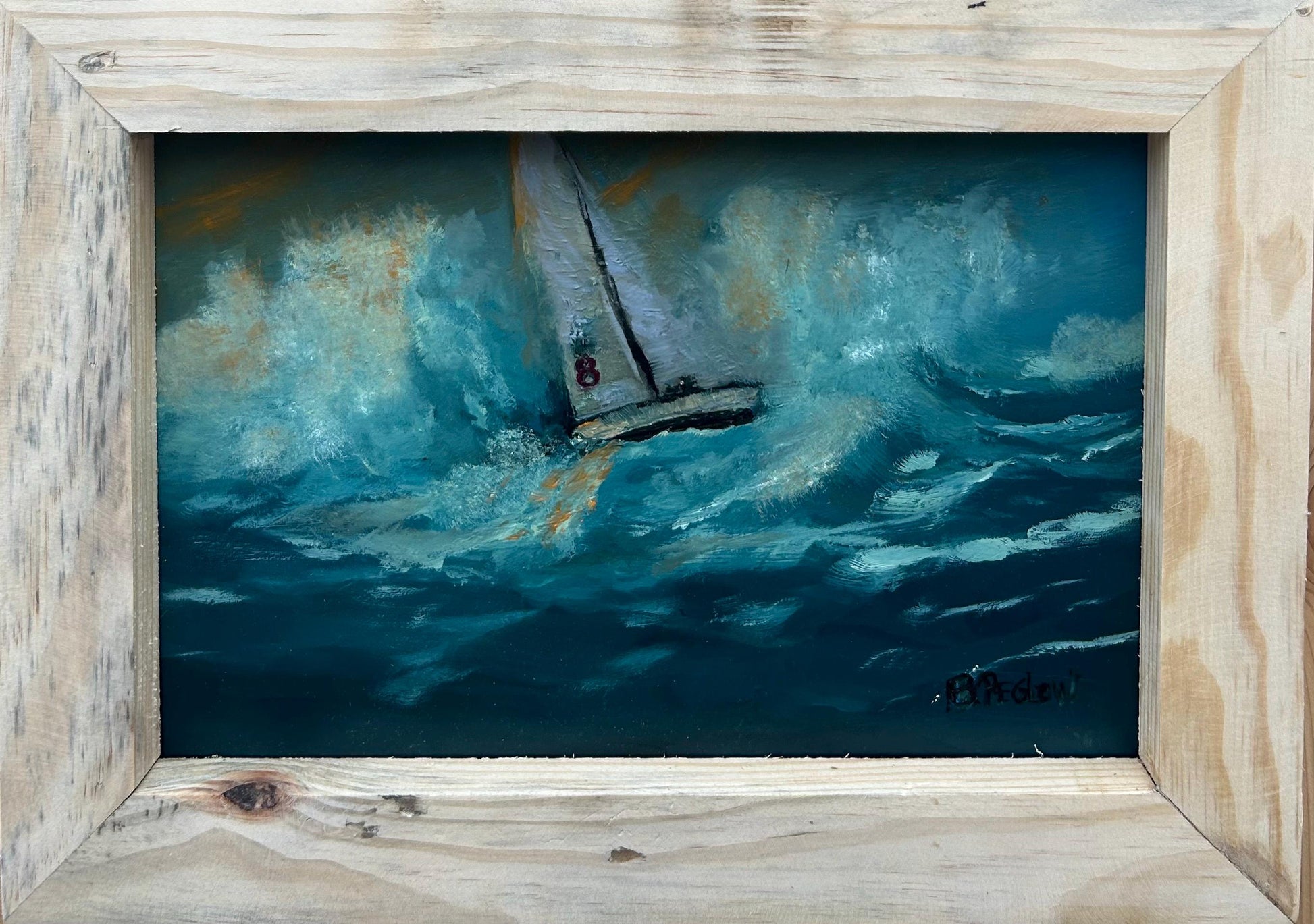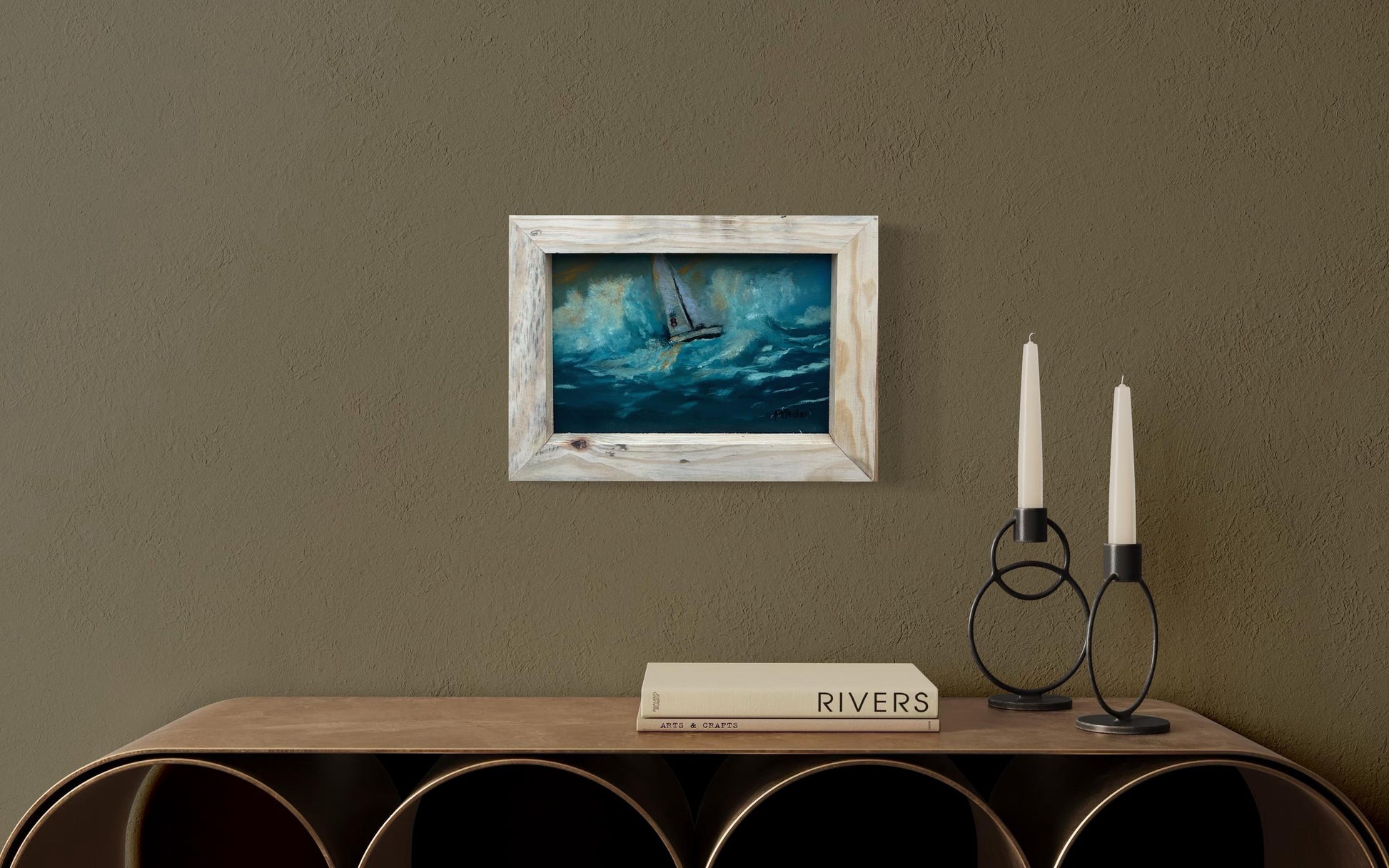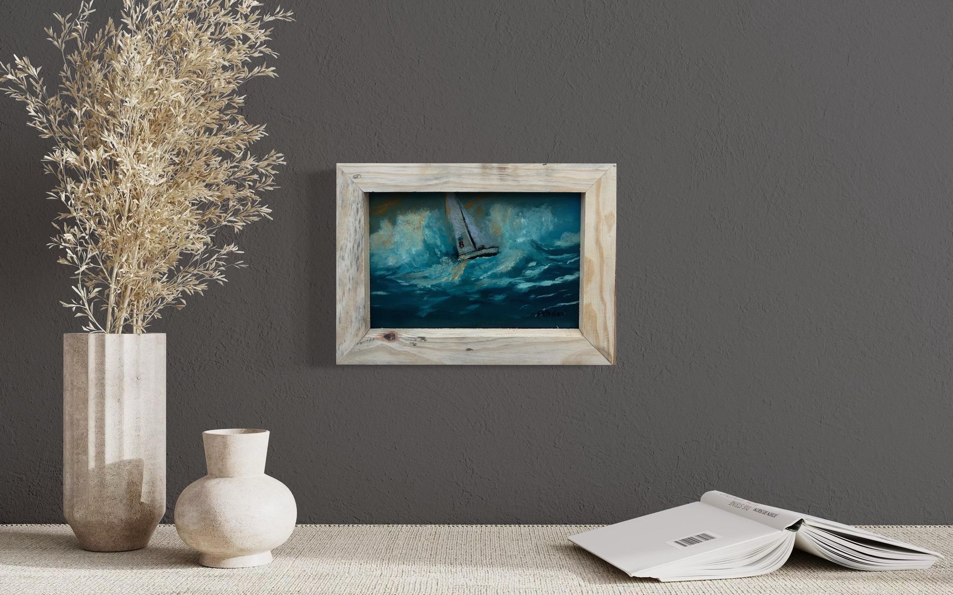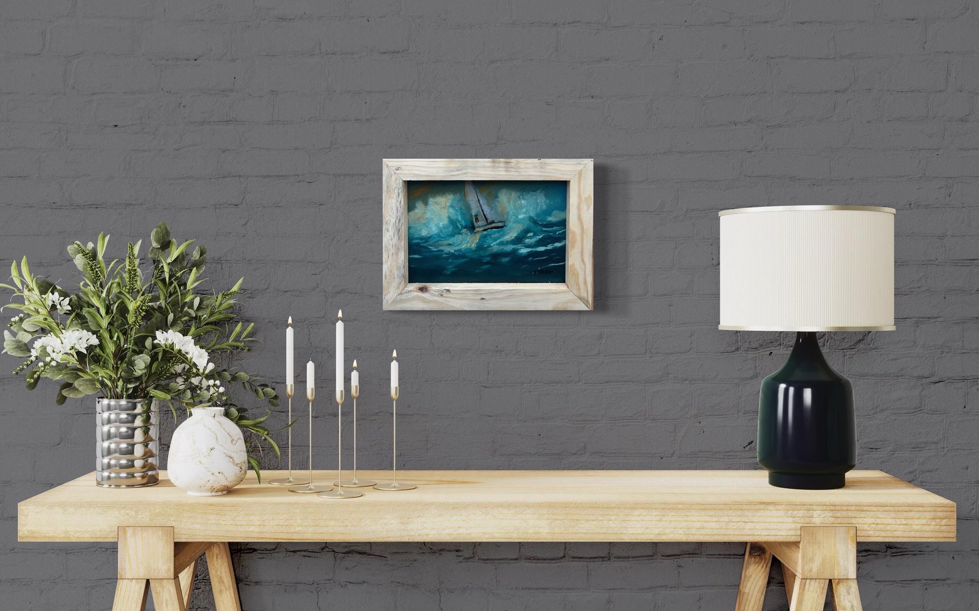 Immerse yourself in the dramatic beauty of the ocean with this striking oil painting of a small sailboat battling large waves on the open sea. The artwork captures the intense motion of the waves and the resilience of the sailboat, creating a powerful and dynamic maritime scene. The vivid brushstrokes and deep blues convey the raw energy of the sea, while the detailed depiction of the sailboat adds a touch of realism and adventure. Perfect for nautical enthusiasts, sea lovers, or anyone looking to add a sense of movement and drama to their decor. This piece brings the thrill of the open ocean into your home, making it a stunning focal point for any room.