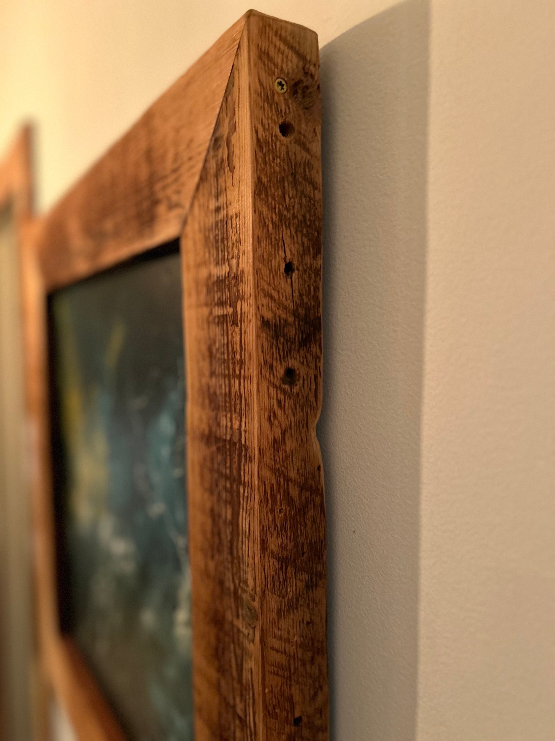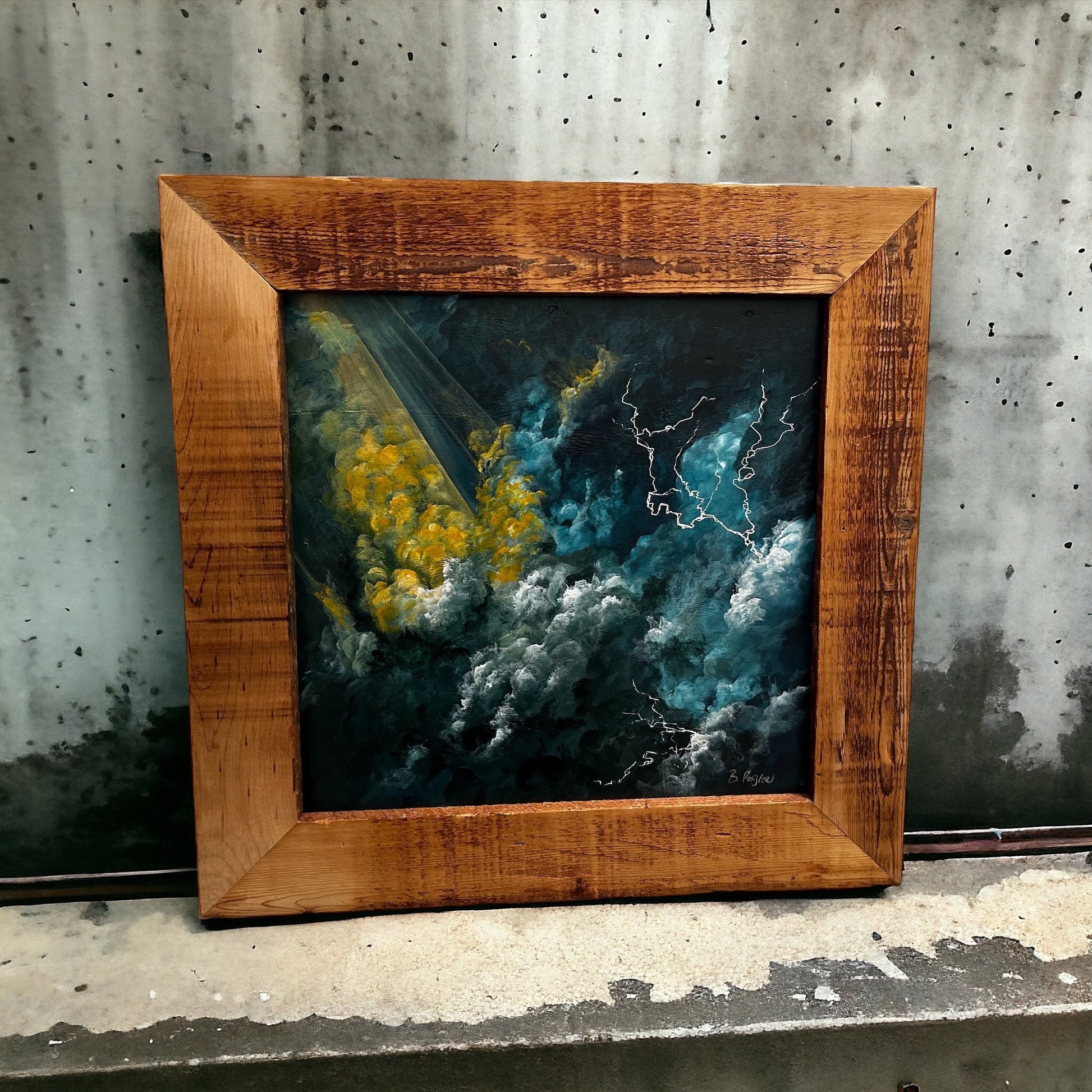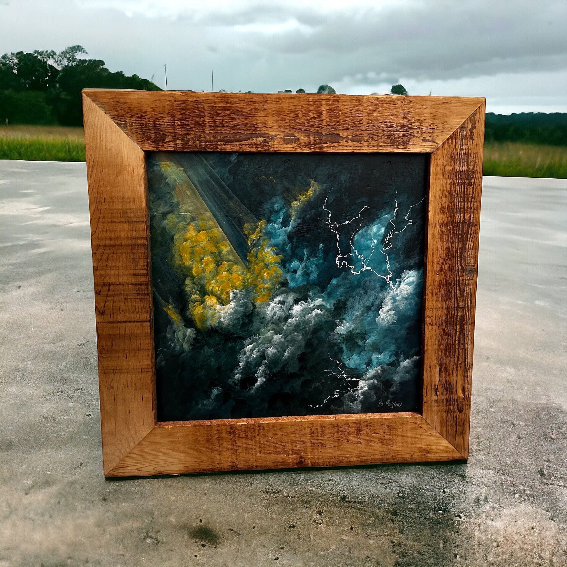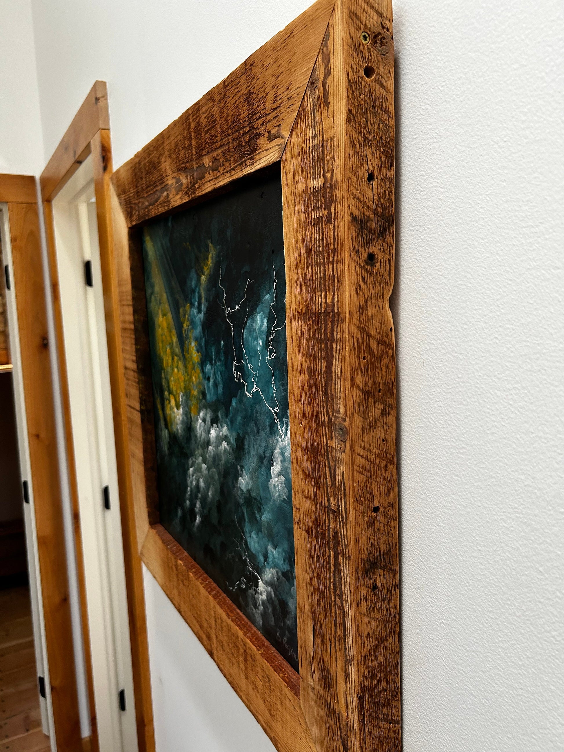 Materials: Acrylic Paint on Hardboard and Hand Made Frame: "Frame is reclaimed Douglas Fir wood recovered from an old factory tear down in St. Paul Minnesota.
