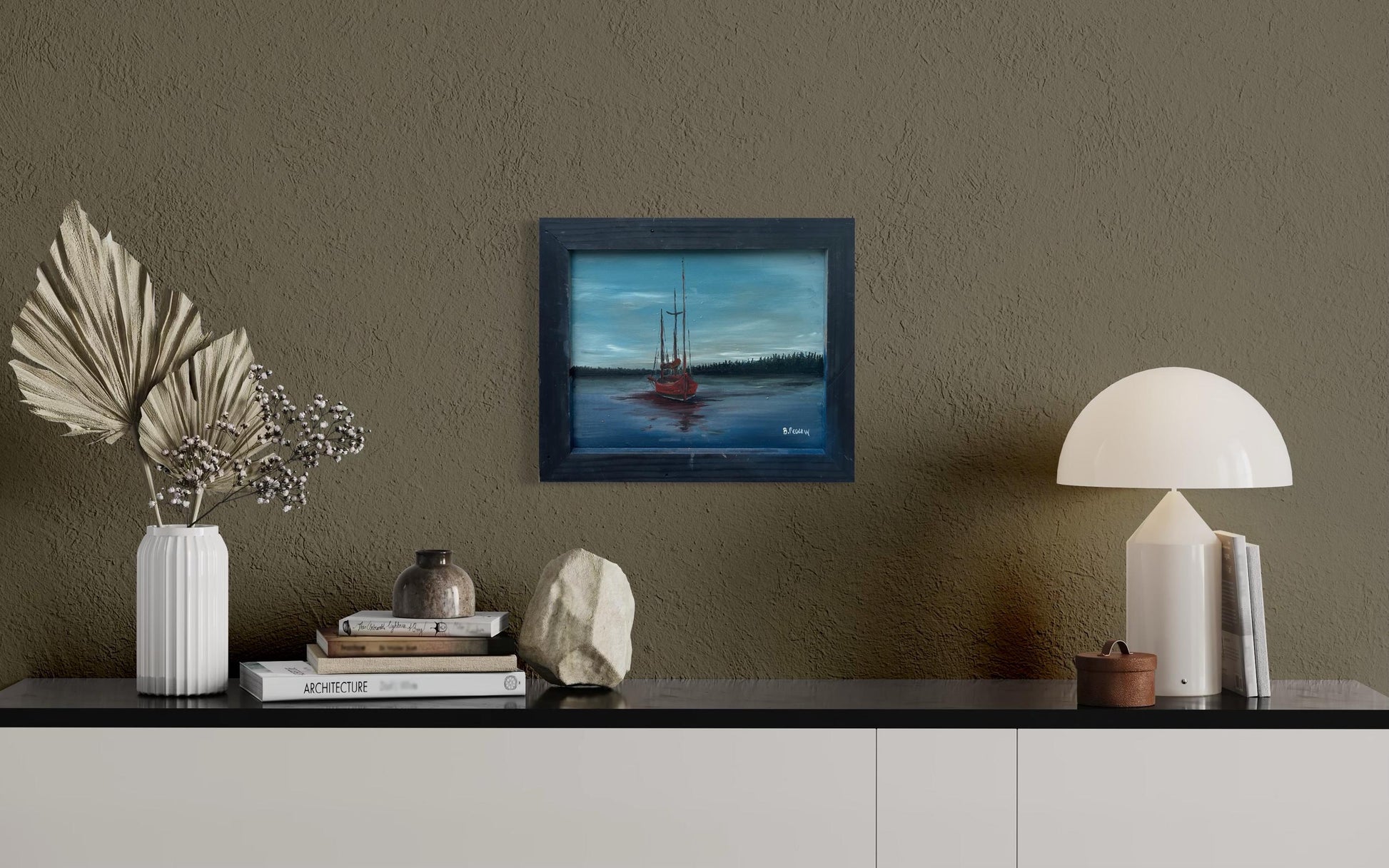 Bring the serene beauty of Lake Superior into your home with this elegant oil painting of a sailboat anchored on calm waters. Capturing the tranquility of a peaceful lake scene, this artwork features a classic sailboat gently resting on the placid surface of Lake Superior, surrounded by the subtle hues of a quiet, reflective sky. The detailed brushwork and soft color palette evoke a sense of calm and serenity, making it a perfect addition to any nautical-themed room or a serene space. Ideal for boat enthusiasts, nature lovers, or anyone seeking a peaceful, nature-inspired piece, this painting adds a touch of elegance and tranquility to your decor. Whether displayed in a living room, study, or lakeside retreat, it serves as a timeless reminder of the beauty and calm of Lake Superior.